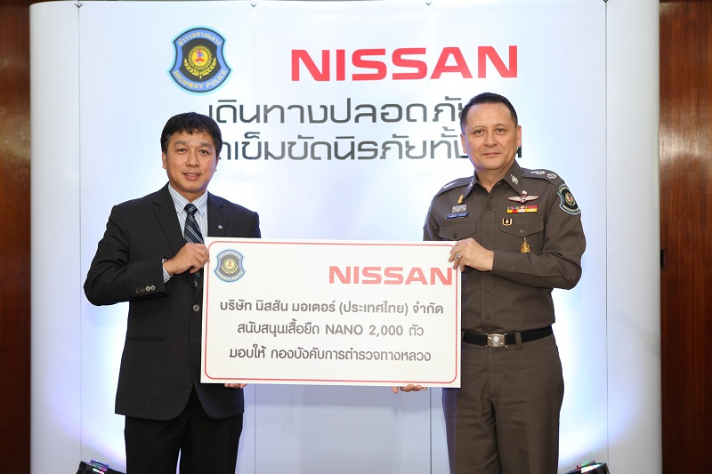 คุณประพัฒน์ เชยชม รองกรรมการผู้จัดการใหญ่อาวุโสการตลาดและขาย บริษัท นิสสัน มอเตอร์ (ประเทศไทย) จำกัด กล่าวว่า “นอกจาก นิสสันจะเป็นผู้ผลิตรถยนต์ที่มีคุณภาพและเป็นมิตรต่อสิ่งแวดล้อมแล้ว เรายังได้ตระหนักถึงความปลอดภัยของผู้ขับขี่รถยนต์และผู้โดยสารทุกท่านที่จะต้องเดินทางในช่วงวันหยุดยาว เราจึงได้เดินหน้าสานต่อโครงการนี้ขึ้นอีกเพื่อเป็นการเน้นย้ำและรณรงค์ให้ทุกคนคาดเข็มขัดนิรภัยทุกครั้งก่อนออกเดินทาง นอกจากนี้เรายังคงเล็งเห็นถึงความสำคัญของเจ้าหน้าที่ในการปฏิบัติงานและอำนวยความสะดวกเพื่อประชาชนผู้ใช้ถนนทุกท่าน ด้วยการมอบอุปกรณ์เพื่อสาธารณประโยชน์เพิ่มเติมและต่อเนื่องเป็นปีที่ 3 ให้แก่กองบังคับการตำรวจทางหลวงและกรมป้องกันและบรรเทาสาธารณภัย ได้แก่ เสื้อยืดนาโนระบายความร้อน จำนวน 2,000 ตัว ป้ายหยุดตรวจ จำนวน 10 ป้าย พัดลมสามขา จำนวน 30 ตัว และ น้ำดื่มนิสสันจำนวน 70,000 ขวด ได้นำไปใช้ในการปฏิบัติหน้าที่ด้วย”