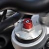 ระบบกันสะเทือนช่วงล่าง โช้คอัพหน้าคู่ UpSideDown จาก Kayaba 41 มม. ซึ่งสามารถปรับ Preload ได้ทางแกนโช้คบน และปรับ Rebound-Compression ได้ที่แกนล้อ มีระยะเคลื่อนตัว 115 มม.