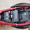โช้คหลัง Monoshock จาก KYB เช่นกัน สามารถปรับ Rebound-Compression ได้ที่ตัวกระบอก Sub-Tank และมีระยะเคลื่อนตัว 135 มม.