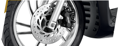 – ระบบคอมบายเบรก พร้อมดิสก์เบรกหน้า-หลัง หนึ่งเดียวในคลาสรถจักรยานยนต์รุ่น 150 ซีซี เอ.ที ที่เพิ่มความอึ่นใจอีกขั้นด้วยดิสก์เบรกหน้า-หลัง หยุดสนิทมั่นใจ ปลอดภัยทุกการขับขี่มาตรฐานเดียวกับที่ยุโรป