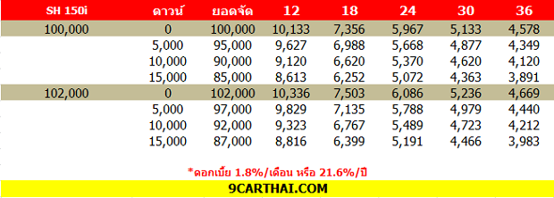 ราคา ฮอนด้า เอสเฮช 150 ไอ ตารางราคา-ผ่อน-ดาวน์