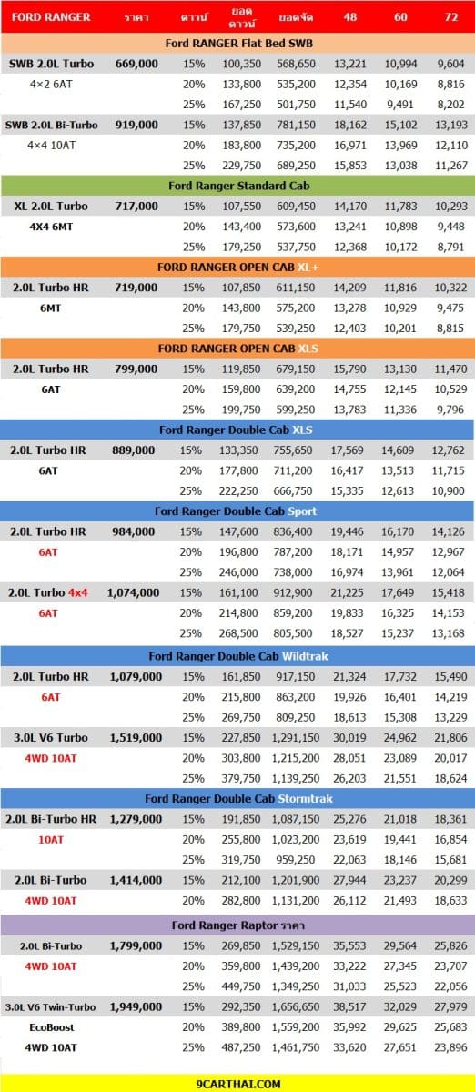 ใหม่ All New Ford Ranger 2025-2026 ราคา ฟอร์ด เรนเจอร์ ตารางผ่อน-ดาวน์