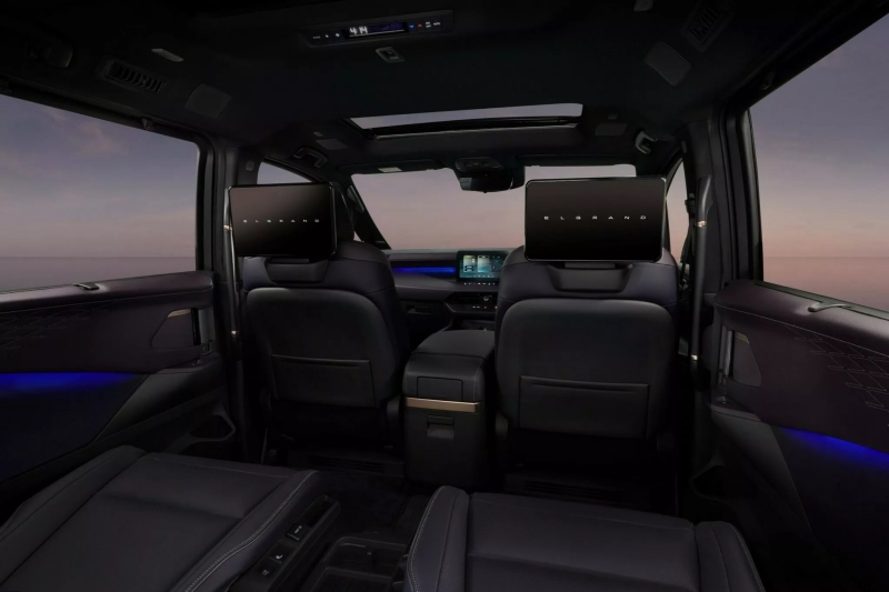 แน่นอนว่าไฮไลต์ของ Elgrand ยังคงเป็น ห้องโดยสารสุดหรู มาพร้อมพวงมาลัยใหม่หุ้มหนังทูโทน พร้อมปุ่มควบคุมเต็มพิกัด มีหน้าจอคู่ขนาด 14.3 นิ้ว สำหรับทั้งฝั่งผู้ขับและผู้โดยสาร และคอนโซลกลางดีไซน์ใหม่เอี่ยม