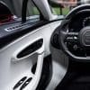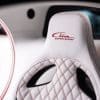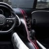 การตกแต่งภายในให้เข้ากับรูปลักษณ์ภายนอกอันน่าทึ่ง ด้วยหนังสีขาวที่เบาะนั่ง แผงประตู เสา และคอนโซลกลาง ในขณะที่ส่วนอื่นๆ เป็นคาร์บอนไฟเบอร์ และมีการเน้นสีแดงอยู่ทั่วทั้งคัน