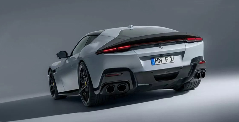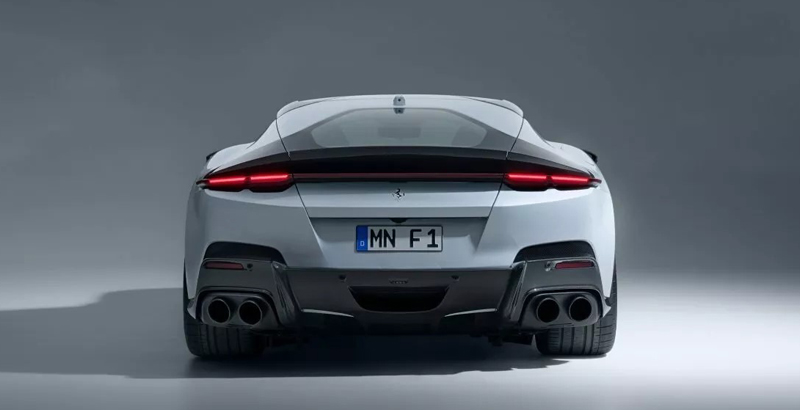 ด้านท้ายก็ไม่น้อยหน้า มาพร้อม ดิฟฟิวเซอร์และสปอยเลอร์หลังคาร์บอนไฟเบอร์ เสริมหล่อแต่ยังคงความเรียบหรู ไม่เวอร์จนกลบเสน่ห์ของ Ferrari เดิม