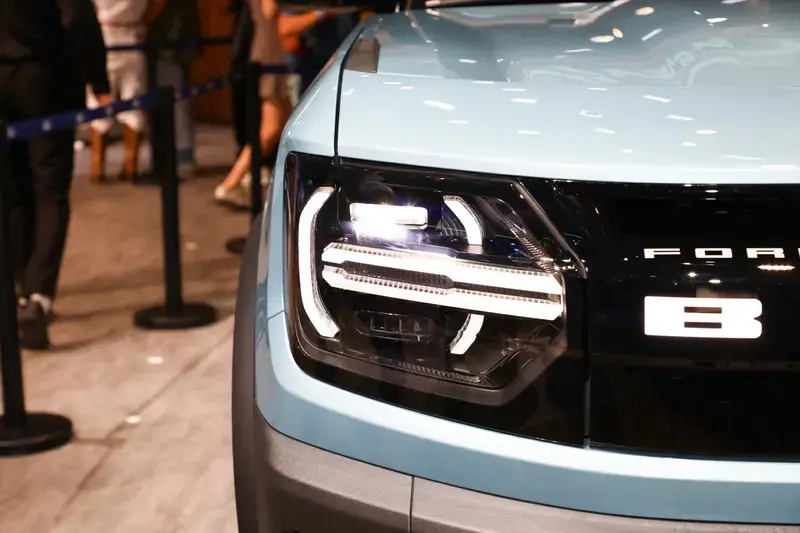 แม้จะเป็นรุ่นไฟฟ้า แต่ Ford Bronco ยังคงเอกลักษณ์ความบึกบึนเอาไว้ครบ ด้านหน้ามาพร้อมโลโก้ “BRONCO” แบบเรืองแสง เชื่อมต่อกับไฟหน้า กลายเป็น Light Bar สุดเท่ ฝากระโปรงมี ช่องดักลมฟังก์ชันจริง ช่วยทั้งแอโรไดนามิกและเพิ่มประสิทธิภาพการวิ่งไกล