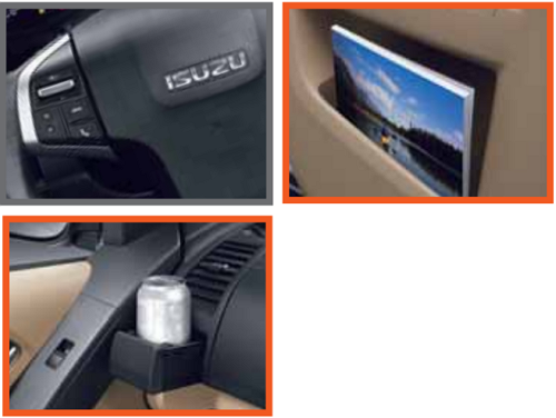 – อีซูซุ ซูเปอร์เดย์ไลท์ (ISUZU SUPER DAYLIGHT)* ไฟส่องสว่างกลางวัน เห็นชัดแม้กลางแดดจ้า ฝนตกหรือหมอกลงจัด เพิ่มทัศนวิสัยที่ชัดเจนขึ้นให้แก่ผู้ร่วมทางบนท้องถนน สามารถมองเห็นได้จากระยะไกล ช่วยกะระยะการขับขี่ได้ดีขึ้นในทุกสถานการณ์