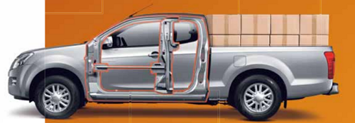 – โครงสร้างหัวเก๋ง และโครงสร้างกระบะท้ายแบบชั้นเดียว แข็งแกร่ง ลดโอกาสการเกิดสนิม