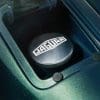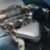 คอนโซลกลางทำจากอะลูมิเนียมอโนไดซ์ สลักด้วยพิมพ์เขียวของ E-Type Series I จาก Jaguar Archives
