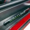 Lamborghini Centenario Roadster สุดพิเศษคันนี้ ได้รับการตกแต่งด้วยเฉดสีแดง Rosso Efesto ตัดกับแถบสีดำ ที่พาดผ่านฝากระโปรงหน้าไปยังด้านหลัง นอกจากนี้ยังมีชุดแต่ง Carbon Fiber อีกมากมาย เช่น สปลิตเตอร์หน้า ฝาครอบเครื่องยนต์ และดิฟฟิวเซอร์ด้านหลังขนาดใหญ่ รวมถึงชุดล้อ
