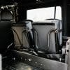 ภายในยังเพียบพร้อมกว่า Defender มาตรฐานมาก เบาะนั่งด้านหน้าแบบปรับอุณหภูมิอุ่นเบาะได้ ขณะที่ด้านหลังมีเบาะนั่งติดตั้งด้านข้างหันหน้าเข้าหากัน 4 ที่นั่ง สามารถพับเก็บได้ง่าย