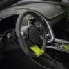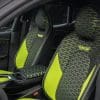 ภายในห้องโดยสารออกแบบให้สอดคล้องกับดีไซน์ภายนอก ด้วยการเลือกใช้สีดำ ตัดกับสีเขียวมะนาว ไม่ว่าจะเป็นขอบของพรมปูพื้น เบาะนั่ง คอนโซลกลาง การเย็บตกแต่งบนแผงหน้าปัด และพวงมาลัย ซึ่งทั้งหมดทำด้วยความประณีต