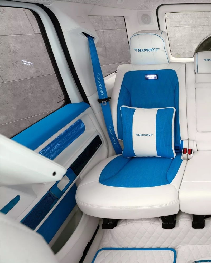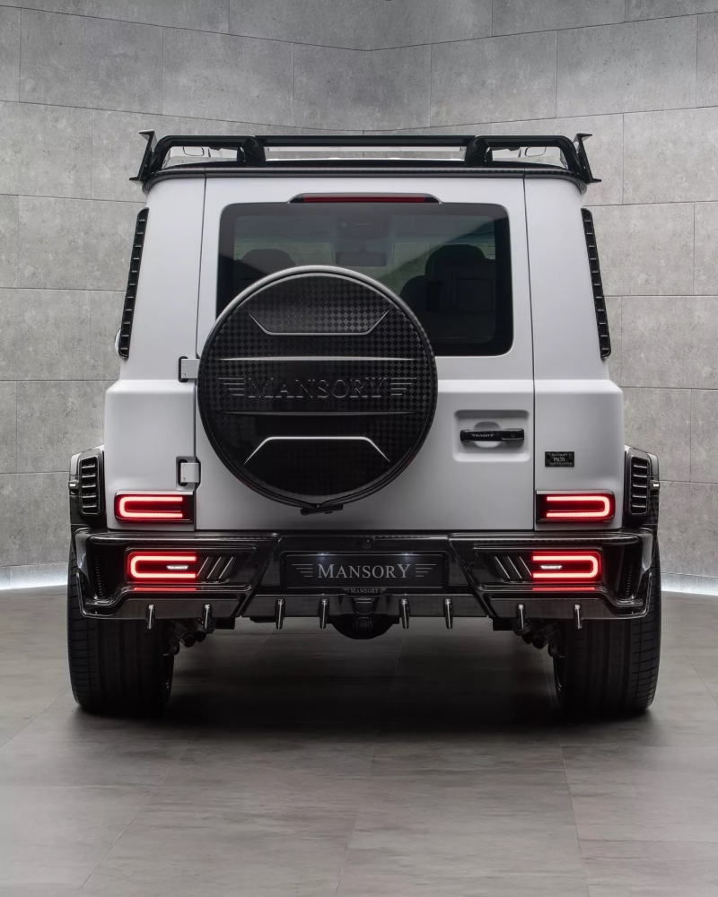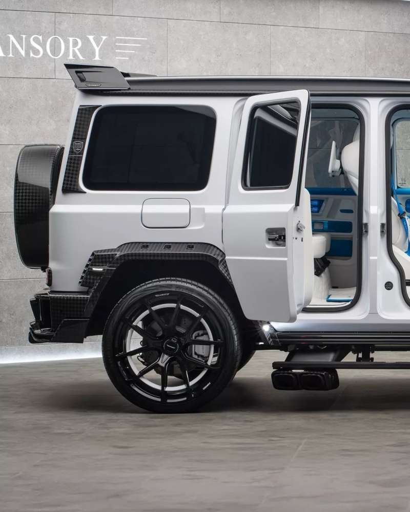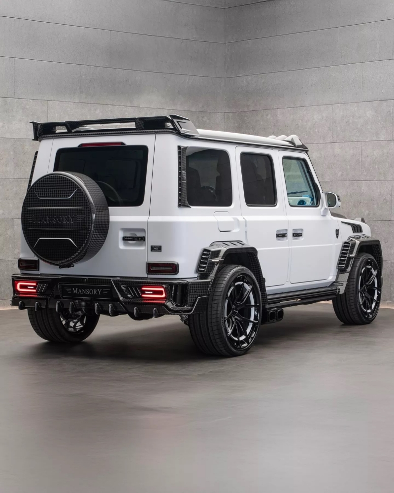 ตัดด้วย สีขาวด้าน (Matte White) ที่ตัดกันอย่างดุดันกับแผงคาร์บอนไฟเบอร์ของ Mansory ดูแล้วเหมือน “ยักษ์ซามูไรใส่เกราะคาร์บอน” พร้อมลุยทุกสนาม