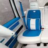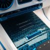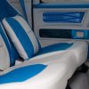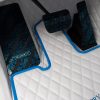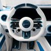 ภายในห้องโดยสารบุด้วย หนังสีขาวสะอาดตา เกือบทุกพื้นผิว ตั้งแต่เบาะ แผงประตู แดชบอร์ด พวงมาลัย ยันพรมพื้น แซมด้วยหนัง สีน้ำเงินสด ตามช่องแอร์ ปุ่มควบคุม และคอนโซลกลาง พร้อมลวดลายเพชรสุดหรูบนแป้นคันเร่งและคอนโซลกลาง ที่เด็ดคือปุ่ม สตาร์ทเครื่องยนต์ ถูกย้ายไปอยู่บนเพดาน! เหมือนสตาร์ทเครื่องบินเจ็ต