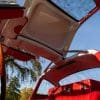 • เบาะหนังแดงหรูหรา รวมถึง กระเป๋าเดินทางขนาดใหญ่ ที่วางหลังเบาะ