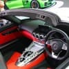 ดีไซน์ภายใน มาพร้อมกับเบาะหนัง Nappa ที่อยู่ต่ำเพื่อช่วยโอบล้อมผู้ขับขี่ให้รู้สึกราวกับอยู่ในรถแข่ง, พวงมาลัยเอเอ็มจีเพอร์ฟอร์มานซ์หุ้มหนัง Nappa และ เส้นใย DINAMICA Microfibre หรือสามารถสร้างความโดดเด่นให้มากยิ่งขึ้นด้วยชุดเบาะเสริมแบบเอเอ็มจีเพอร์ฟอร์มานซ์ที่สามารถปกป้องร่างกายของผู้ขับขี่และผู้โดยสารทั้งด้านหน้าและด้านหลังได้มากขึ้นด้วยพนักพิงหลังที่มีความโค้งและเสริมด้วยวัสดุเพื่อความนุ่มสบายที่ด้านข้างมากกว่าเบาะที่นั่งแบบมาตรฐาน อีกทั้งยังติดตั้งระบบให้ความอบอุ่นบริเวณช่วงคอแบบแอร์สคาร์ฟ (AIRSCARF) และระบบทำความเย็นให้กับเบาะสำหรับการขับขี่แบบเปิดประทุนทั้งในฤดูร้อนและฤดูหนาว โดยผู้โดยสารสามารถปรับเลือกอุณหภูมิของระบบทำความร้อนและความเย็นได้ 3 ระดับ, แผงหน้าปัดกว้าง ทำให้ทั้งผู้ขับขี่และผู้โดยสารรู้สึกราวกับถูกโอบล้อมด้วยปีกนก และห้องโดยสารที่สามารถเปลี่ยนสีได้หลากหลายเพื่อเพิ่มสุนทรียะในการขับขี่