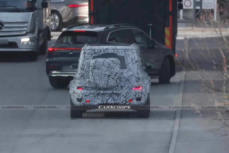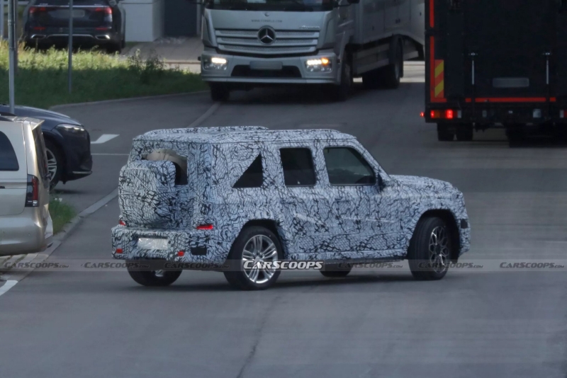 ในภาพแอบถ่ายมีภาพที่เทียบกับรถตู้ V-Class สูง 1,900 มม. ซึ่งทำให้เห็นชัดว่า Mini G-Class หรือ Baby G-Class ดูเตี้ยกว่าแบบสังเกตได้ทันที และเมื่อตามหลัง EQS SUV ยิ่งเห็นว่ารุ่นจิ๋วนี้สั้นกว่าและเตี้ยกว่ามาก ซึ่งภาพรวมคือเล็กลงราว 15% จาก G-Class