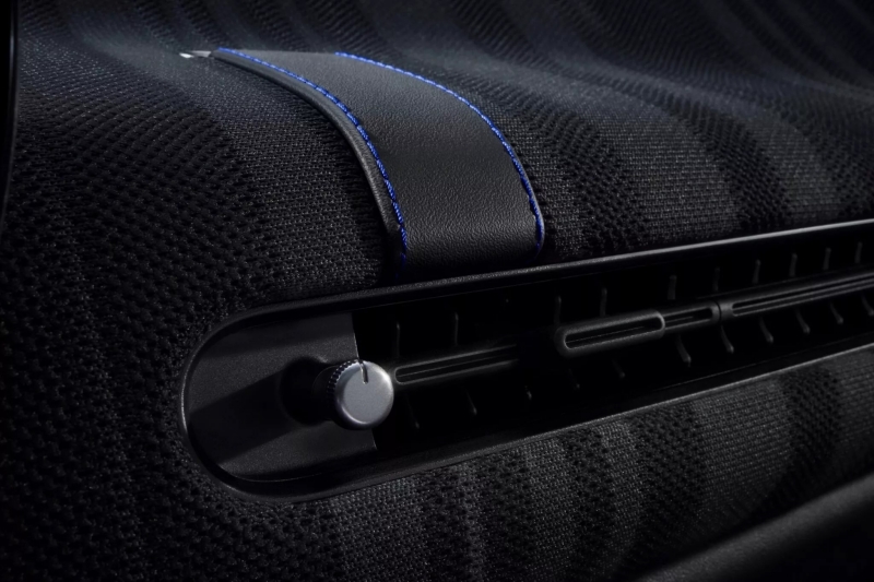 เมื่อเข้าไปข้างใน จะพบเบาะ Nightshade Blue สปอร์ตดีไซน์ ที่ผสมระหว่างหนังเทียม Vescin กับผ้าทูโทน เนื้อสัมผัสหรูดูแพง แผงคอนโซลและประตูตกแต่งด้วย ลายถักพิเศษ (Special Knitting) พร้อม ลาย Signature Stripe บนพวงมาลัย