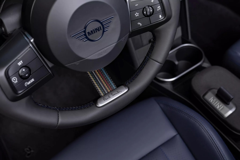 ส่วนรุ่น 3 และ 5 ประตู ยังได้ ลาย Signature Stripe บนหลังคา และ ลายเซ็น Paul Smith ด้านท้ายรถ พร้อมล้ออัลลอยขนาด 18 นิ้ว สีดำด้าน และ โลโก้ Mini สี Black Blue ที่ออกแบบให้เข้ากับโทนสีสุดแฟชั่นของรุ่นนี้