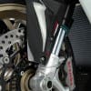 – ด้านหน้า เป็นช็อคอับเทเลสโคปิคหัวกลับ ขนาด 43 มม. ระยะการทำงาน 125 มม. จาก MARZOCCHI ผิวแกนเคลือบด้วยฮาร์ดโครเมี่ยม ปรับตั้งละเอียดทั้งความกระด้างแข็งและระยะการคืนตัว