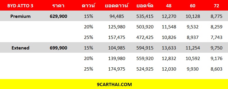 BYD ATTO 3 ตารางผ่อน