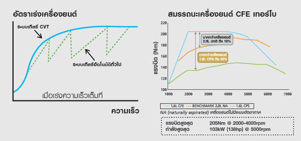 เครื่อง ยนต์เบนซิน 1.6 ลิตร พร้อมเทอร์โบชาร์จเจอร์ และอินเตอร์คูลเลอร์ ด้วยพลังที่เหนือชั้นกว่าเครื่องเบนซินขนาด 1.6 ลิตรทั่วไป สมรถถนะเทียบเท่าเครื่องยนต์ขนาด 2.0 ลิตร แต่ประหยัดน้ำมันเชื้อเพลิงมากกว่า กำลังที่เพิ่มขึ้นช่วยเสริมสมรรถนะ การเร่งแซงได้ดั่งใจ คุ้มค่าน้ำมันทุกหยดต้องจ่ายไป