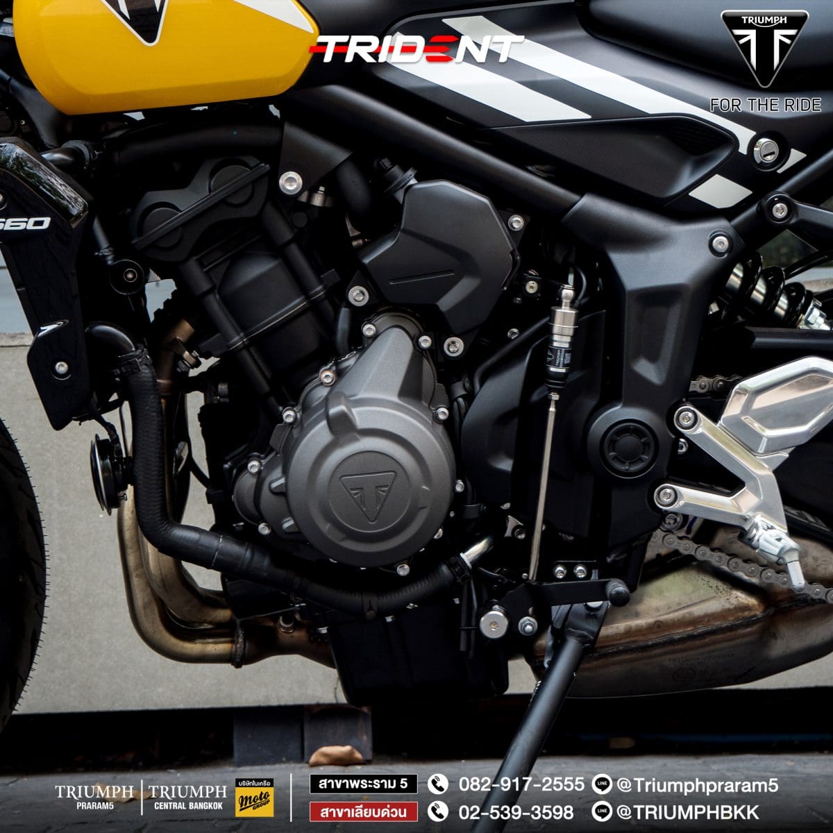 สมรรถนะแบบ Sport ที่เร่งได้ทันใจ : เครื่องยนต์สามสูบที่มีความยืดหยุ่นสูง ผสมผสานแรงบิดที่ช่วงรอบต่ำ เข้ากับกำลังที่ช่วงรอบกลาง และการพุ่งทะยานอย่างเร้าใจที่รอบเครื่องสูงสุด เสริมด้วยระบบอิเล็กทรอนิกส์สนับสนุนการขี่ใหม่ล่าสุด Trident จึงมาพร้อมการควบคุมอย่างเหนือชั้น โดยคงคาแรคเตอร์ความเป็นรถที่ขี่สนุกเอาไว้