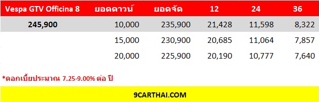แสดงความคิดเห็น เกี่ยวกับ " ใหม่ New Vespa GTV Officina 8 2025-2026 ราคา เวสป้า GTV Officina 8 ตารางผ่อน-ดาวน์ "
