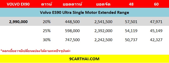 ใหม่ NEW Volvo ES90 2025-2026 ราคา วอลโว่ ES90 ตารางผ่อน-ดาวน์