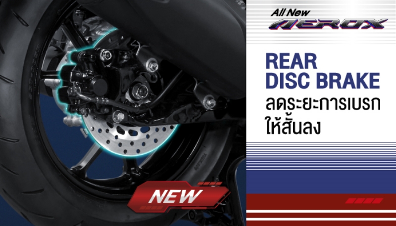 NEW REAR DISC BRAKE 230MM เพิ่ม Performance ให้สปอร์ตยิ่งขึ้น ด้วยระบบดิสก์เบรกหลังขนาด 230mm ช่วยเพิ่มสมรรถนะในการเบรกให้มีระยะที่สั้นลงควบคุมรถได้ดียิ่งขึ้น