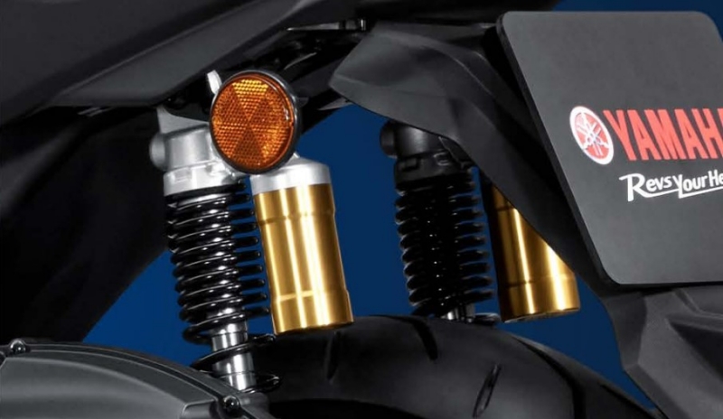 ระบบกันสะเทือน ด้านหน้าเทเลสโคปิค แกนโช้คหน้าใหม่ ขนาด 30 มม. เพิ่มความเสถียรของการขับขี่แบบสปอร์ตในขณะเข้าโค้ง และรองรับแรงกระแทกได้ดี ส่วนด้านหลังเป็นยูนิตสวิงแบบมีซับแทงค์