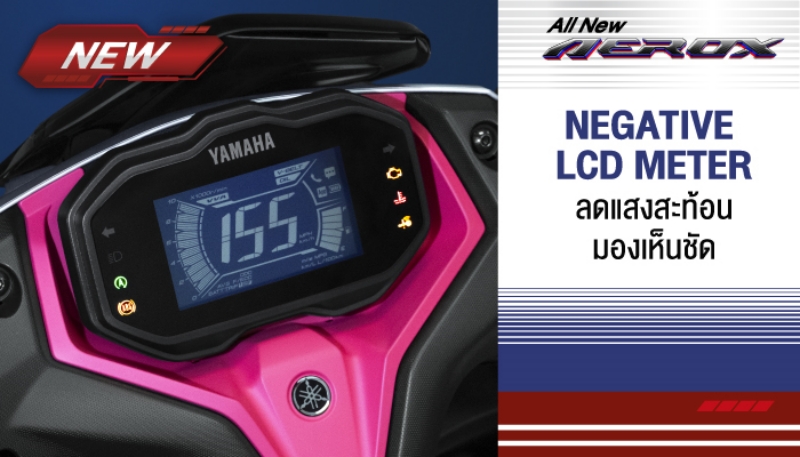 NEW NEGATIVE LCD METER เรือนไมล์ดิจิทัล แบบ Negative LCD ให้อารมณ์เร้าใจสไตล์สปอร์ต แสดงรอบการทำงานของเครื่องยนต์ / ความเร็ว / นาฬิกา / และอื่นๆ พร้อมแจ้งสัญลักษณ์เมื่อมีสายเรียกเข้า หรือข้อความ