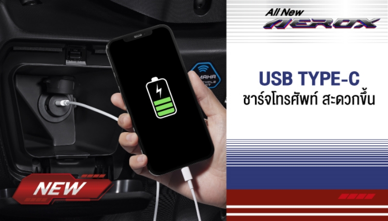 NEW CHARGING SOCKET USB TYPE-C ช่องเสียบต่อชาร์จสมาร์ทโฟน แบบ USB Type-C พร้อมช่องเก็บของด้านหน้าขนาดใหญ่พร้อมฝาปิด