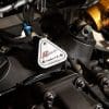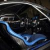ส่วนภายในก็ออกแบบในโทนสีน้ำเงินเช่นเดียวกัน เบาะนั่งหุ้มหนัง Alcantara สีทูโทน ผสมผสานลงตัวกับวัสดุอื่น ๆ ที่เป็นคาร์บอนไฟเบอร์