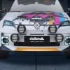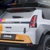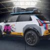 Renault 5 EV จาก Delta 4×4 คันนี้ มาพร้อมกับลวดลายสติกเกอร์สีสันจัดจ้าน โทนเหลือง ฟ้า ชมพู บนพื้นขาว โดดเด่นไม่ซ้ำใคร พร้อมยกสูง 100 มม. (ประมาณ 4 นิ้ว) เพิ่มระยะห่างจากพื้นแบบชัดเจน โป่งล้อใหญ่ + สายหนังรัดฝากระโปรงหน้าและท้าย เพิ่มความวินเทจ ชุดล้ออัลลอย 18 นิ้ว + ยางออฟโรดดอกลึก เกาะพื้นดินได้อย่างมั่นใจ