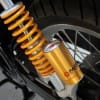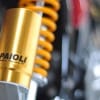 ระบบกันสะเทือน โช้คหน้า Telescopic แกนโช้คขนาด 41 มม. มีระยะเคลื่อนตัว 110 มม. โช้คอัพหลังคู่ Paioli พร้อมซับแท้งค์แยก ปรับ Preload ได้ มีระยะเคลื่อนตัว 80 มม.