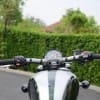 แฮนด์บาร์แบนกว้าง มีกระจกทรงกลมติดตั้งที่ปลายแฮนด์ มอบเอกลักษณ์ ความเท่ เหมือนรถคาเฟ่ อย่าง Thruxton R และ Street Cup