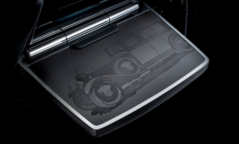 เทคนิคการตกแต่งใช้ทั้ง 3D marquetry, laser etching, ink layering และการปิดทองคำแท้ บนโต๊ะปิกนิกหลังยังสลักภาพ Phantom I (1925) และ Phantom VIII (รุ่นปัจจุบัน) อย่างวิจิตร