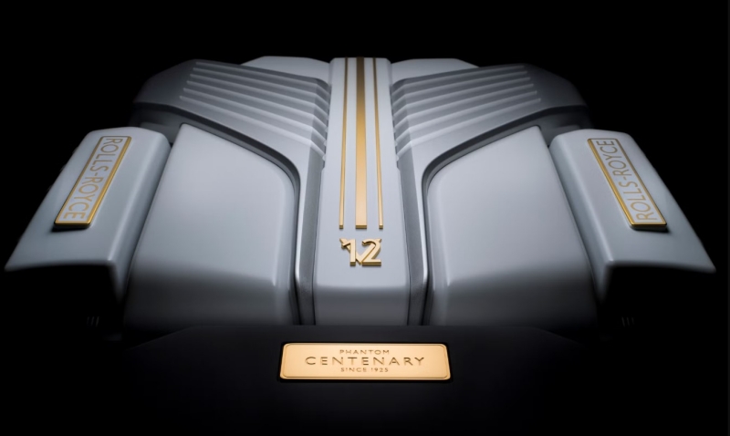 แม้เครื่องยนต์ยังคงเป็นบล็อก V12 ขนาด 6.75 ลิตร อันลือลั่นของ Rolls-Royce แต่ห้องเครื่องได้รับการตกแต่งพิเศษด้วย โทน Arctic White และขอบทองคำ 24 กะรัต เรียบหรูในทุกมิติ