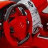 ภายในห้องโดยสาร Là SLR มี Alcantara สีแดงสดหุ้มอยู่ในหลายจุด ไม่ว่าจะเป็นพวงมาลัย แผงหน้าปัด หรือที่นั่ง โดยมีแอคเซ็นต์คาร์บอนไฟเบอร์และช่องระบายอากาศสีเงินเดิมเสริมเข้าไป สร้างความรู้สึกหรูหราและดุดันไปพร้อม ๆ กัน