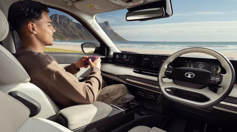 นอกจากนั้นทาง Tata ยังได้เผยภาพของ Sierra EV ที่จะตามมาให้ชมแล้วด้วย โดยมาพร้อมกับดีไซน์ไฟหน้าแบบแถบยาวสไตล์ Tesla กันชนหน้าเรียบไร้กระจัง