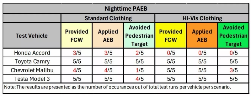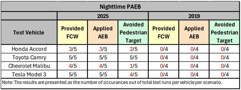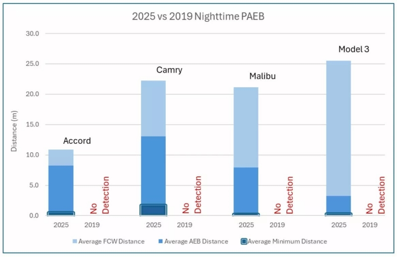 ย้อนกลับไปในปี 2019 AAA เคยทดสอบระบบ AEB แล้วพบว่ามัน “ไร้ประสิทธิภาพสิ้นเชิงในตอนกลางคืน” ซึ่งถือว่าน่ากังวลมาก เพราะกว่า 75% ของอุบัติเหตุคนเดินถนนเสียชีวิตเกิดขึ้นหลังพระอาทิตย์ตกดิน